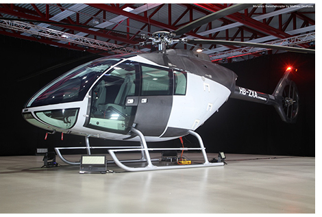 Marenco Swisshelicopter unveiled the first prototype of its all-composite SKYe SH09 light single helicopter on Thursday at Mollis Airport in Switzerland.