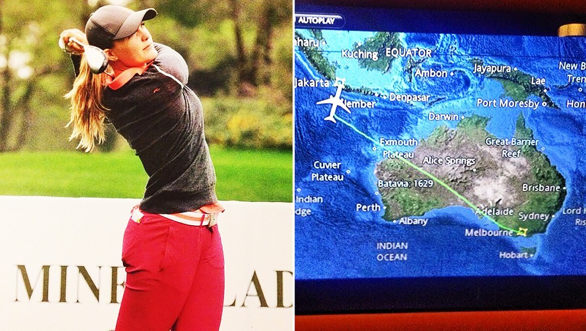 Suzann Pettersen og Mariann Skarpnord har også deltatt i turneringene i Australia, men de reiste med andre fly enn Martens.
