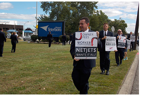 Approximately 300 pilots and other employees of NetJets took to the picket lines yesterday in a three-pronged “informational” protest outside the