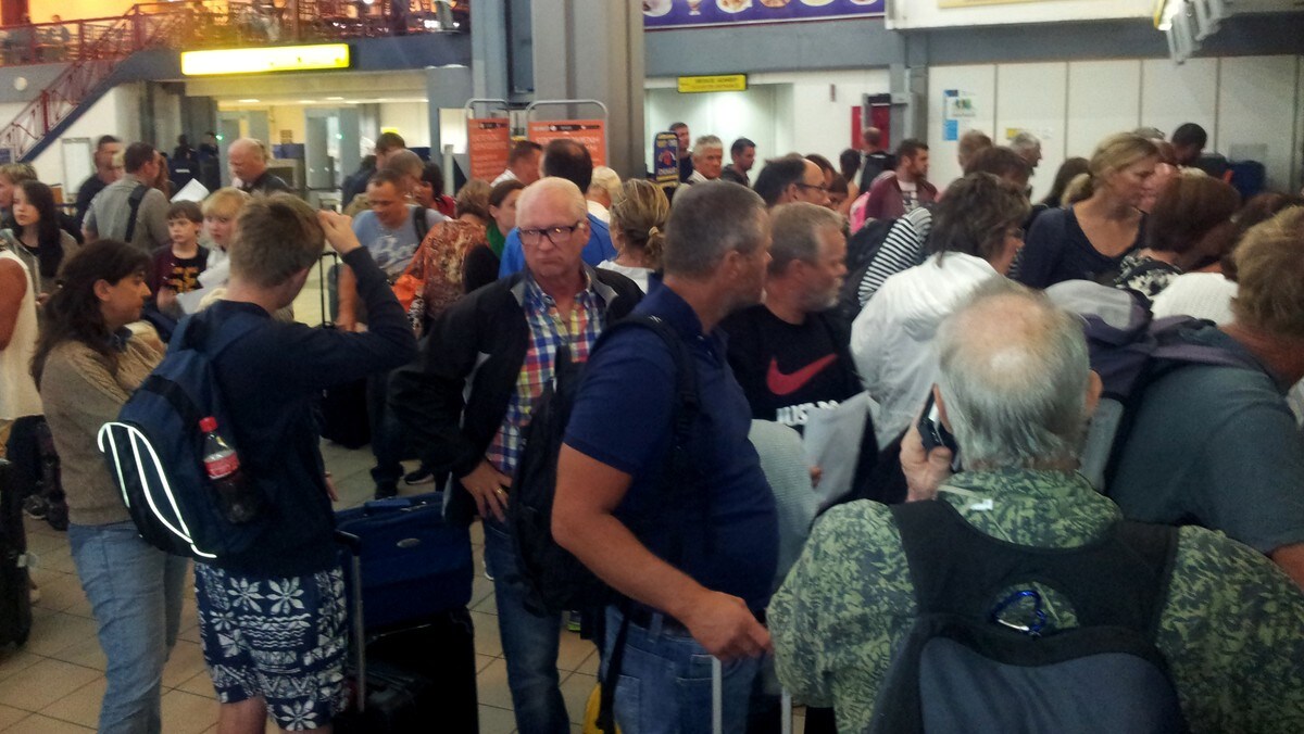 Fredrikstad-kvinnen skulle reist i går, men fikk beskjed om å komme tilbake til flyplassen i formiddag. Ved 16-tiden fikk de beskjed om at flyet er kansellert.