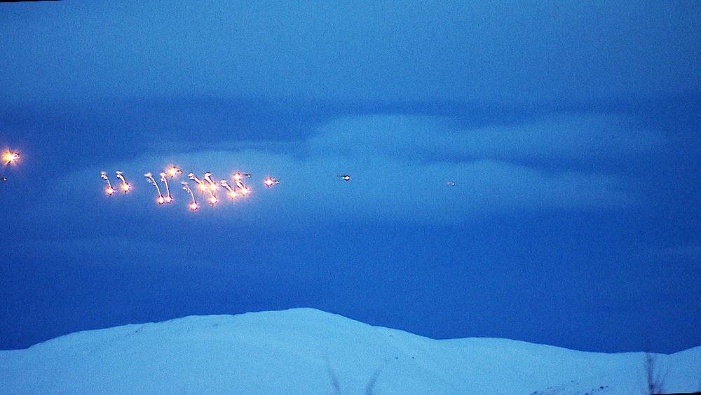 I år besto «julestjerna» av fem Bell 412-helikopter, ett Saab Safari-fly og ett NH90-helikopter.