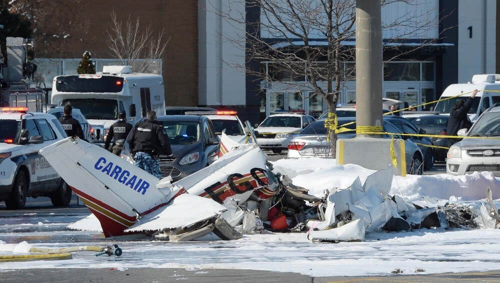 To småfly kolliderte og styrtet over kjøpesenter i Canada
