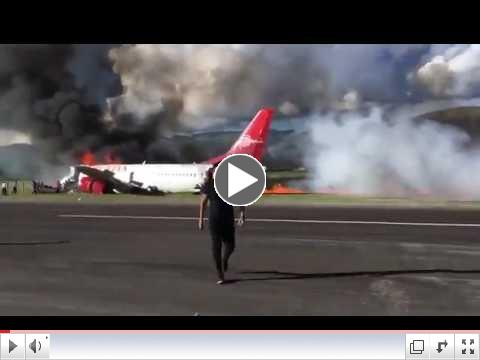 Fuel began leaking from the wing and ignited. The passengers and crew members evacuated safely Whilst the fire spread, consuming a large part of the fuselage.