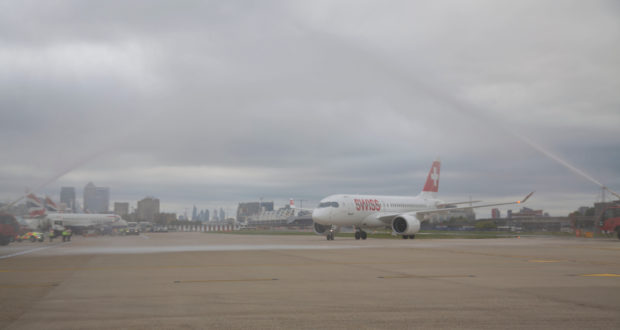 SWISS Bombardier CS100 i London City Airport (Foto: London City Airport)