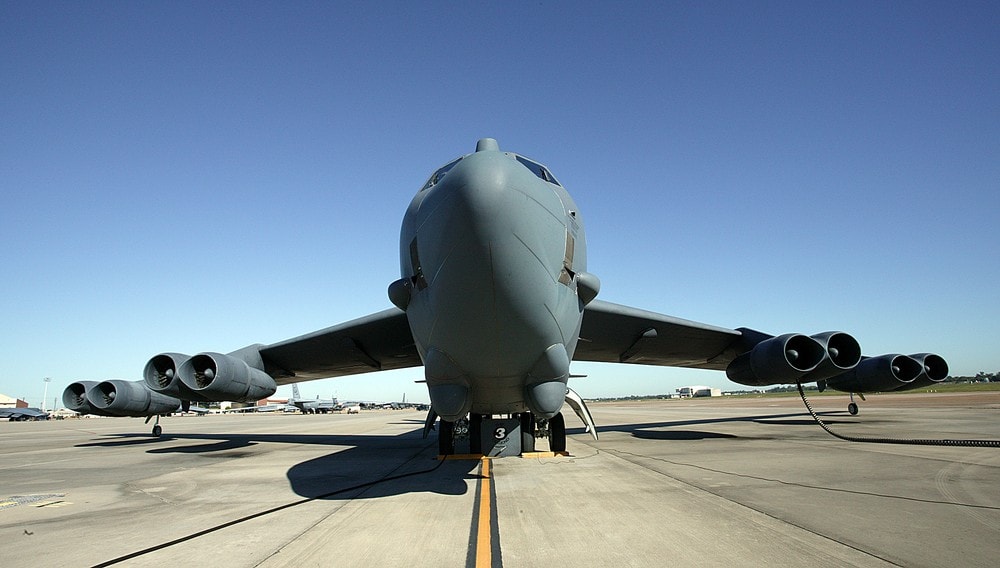 En B52 tar av fra Barksdale Air Force Base. Ingen av bombeflyene ved basen nå står bevæpnet med atomvåpen. Det kan det bli endret på snart.