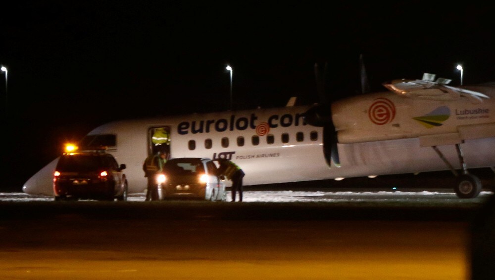 Talsmann Adrian Kubicki sa onsdag kveld til TV-kanalen TVN24 at nesehjulet til propellflyet, som er av typen Bombardier Q400, lukket seg igjen under landing. Det skriver nyhetsbyrået AP.