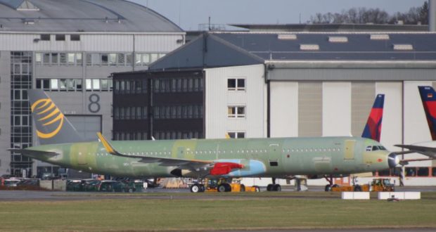 Primera Airs første Airbus A321neo-fly i Hamborg Finkenwerder-lufthavnen, hvor Airbus samler sine fly. Foto: Tobias Gudat / xfwspotter.