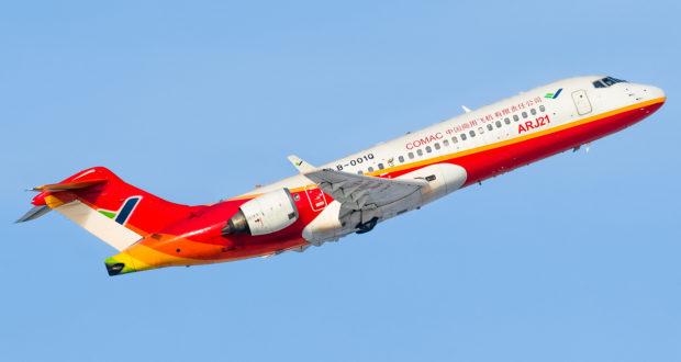 Ikke desto mindre kunne man i weekenden opleve et ARJ21-700-fly fra COMAC (Commercial Aircraft Corporation of China, red.), da den landede i blandt andet den finske hovedstadslufthavn Helsinki-Vantaa og i norske Bergen Lufthavn. Flyet havde registrering B-001Q.