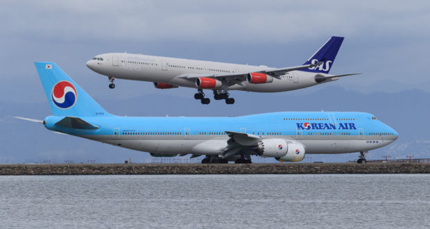 SAS Airbus A340-300 og Korean Air Boeing 747-400. (Foto: Norman A. Graf)
