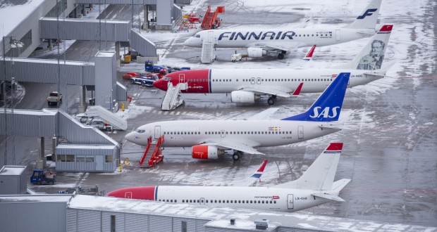 Finnair, Norwegian og SAS i Oslo Lufthavn (Foto: Espen Solli)
