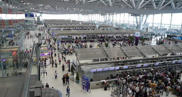 Omkring 4.900 passagerer var torsdag strandet i Bangkok Suvarnabhumi-lufthavnen som følge af, at luftrummet over Pakistan var lukket, hvilket gav udfordringer for flytrafikken – især for trafikken mellem Sydøstasien og Europa.