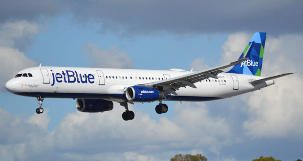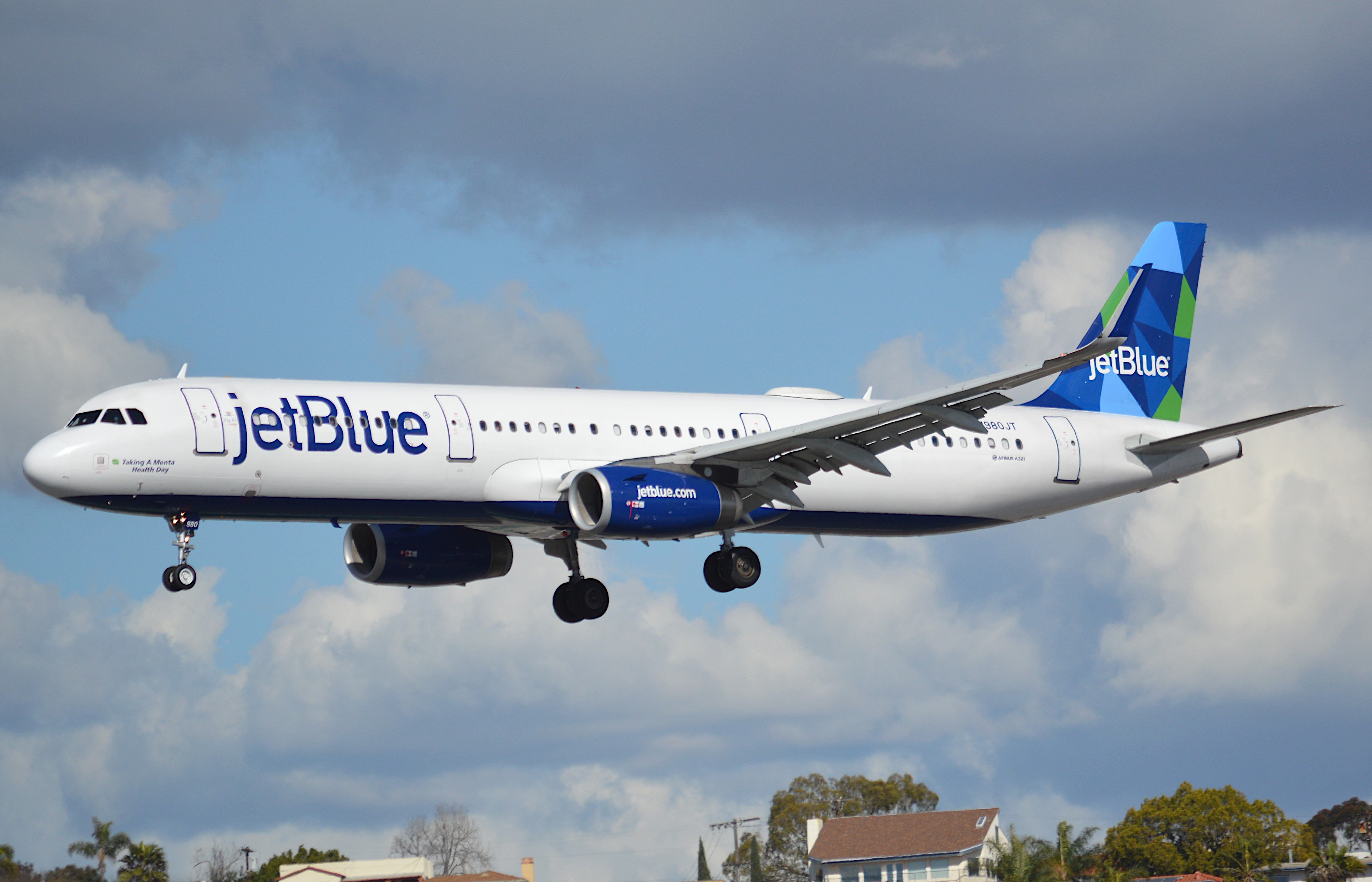 En Airbus A321-200 fra det amerikanske lavprisflyselskab JetBlue. Foto: Johnnyw3