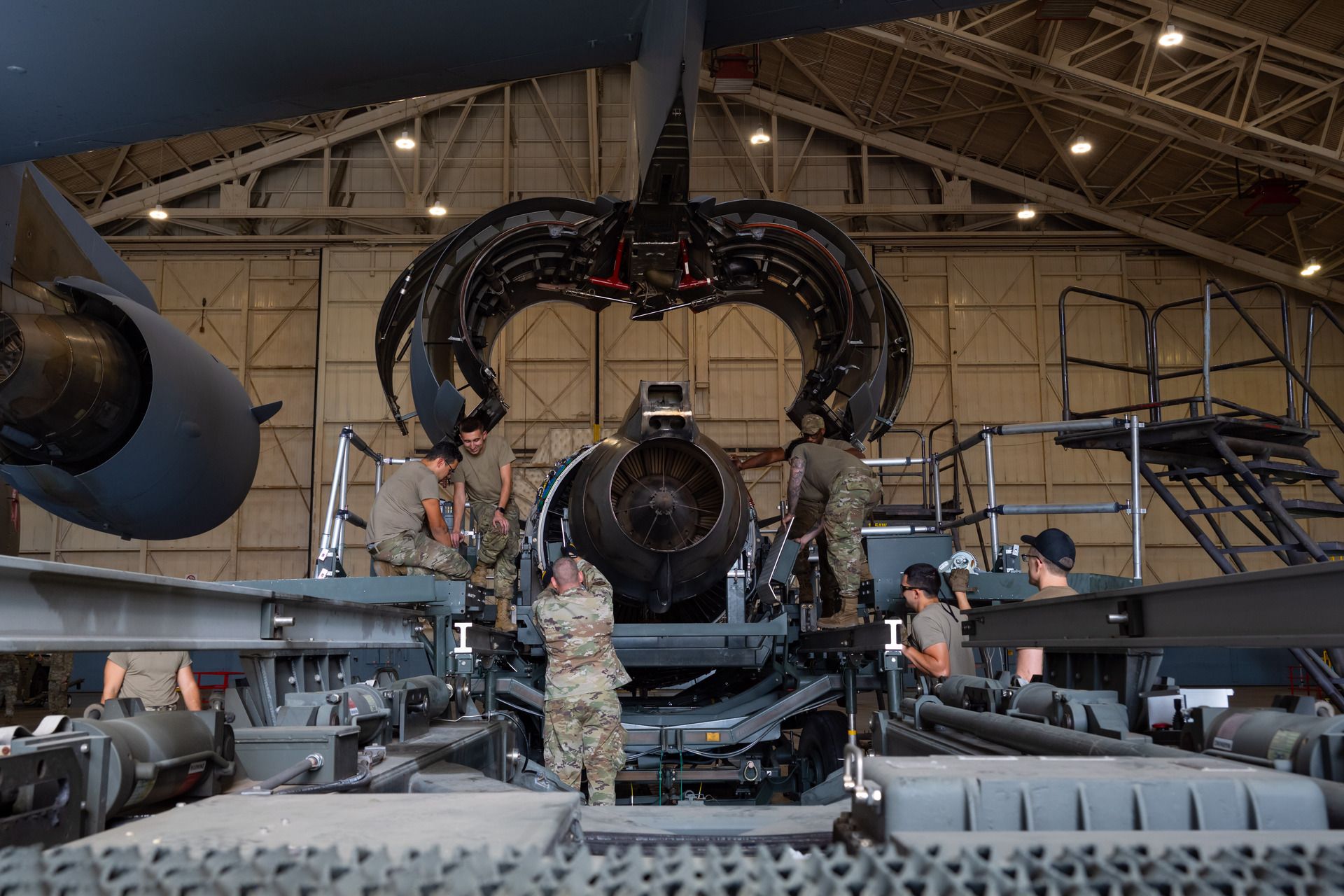 in the 105th Maintenance Squadron’s propulsion shop perform an engine